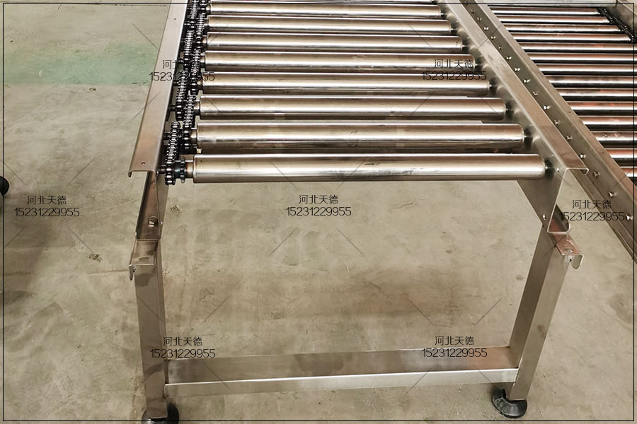 飲料輸送線滾筒輸送機直段滾筒常用的滾筒直徑有38、50、60、76、89mm等。轉彎滾筒的光潔度大家會依據輸送物件的凈重、尺寸、角速度等設計制作。