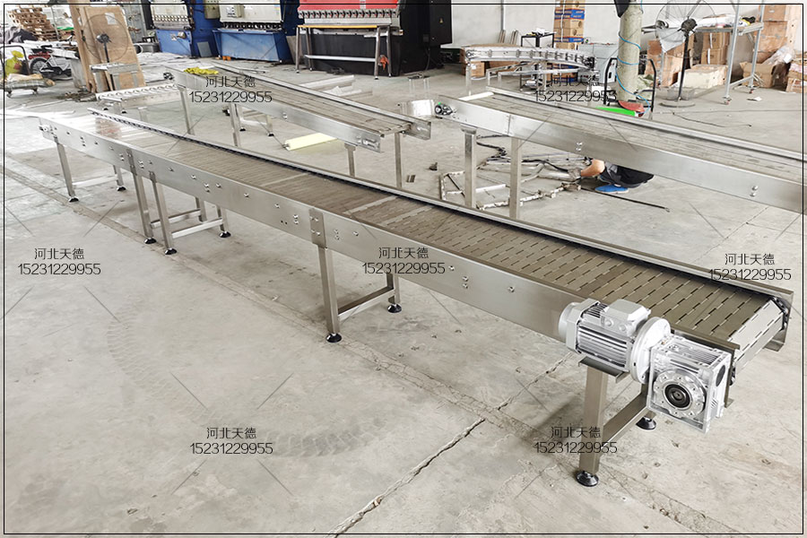 鏈板輸送機歡迎來電定制河北天德雞胸肉油炸流水線鏈板輸送機:15231229955 網址:http://www.wsswb.cn/