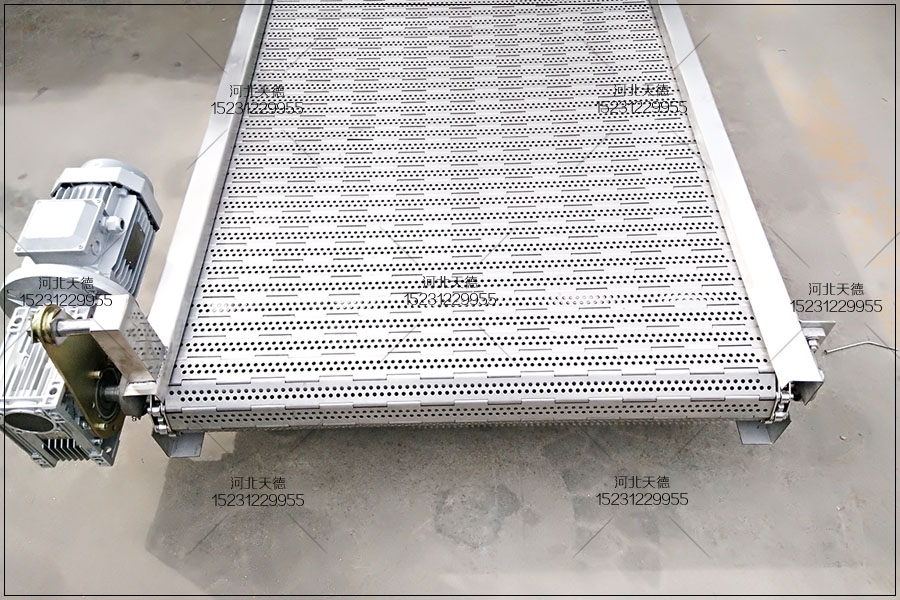河北天德絲網制品有限公司生產鏈板輸送機、鏈板輸送帶、不銹鋼輸送帶:15231229955 http://www.wsswb.cn/