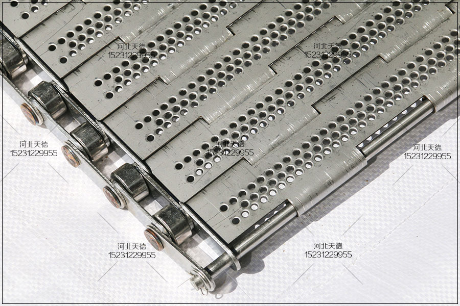 這款鏈板輸送帶采用不銹鋼304鋼板折彎沖孔完成的,所有尺寸都是根據客戶的的要求來生產加工的。