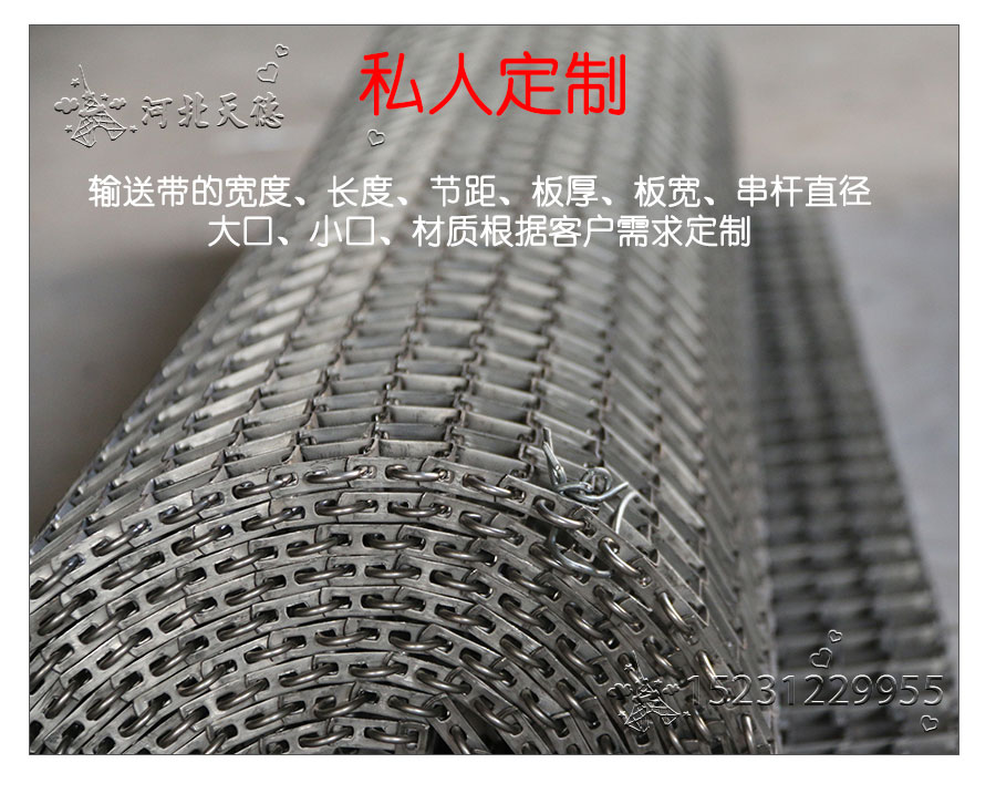 長城網帶屬于非標準件,我們將根據你提供的板寬、板厚、上口寬度、下口寬度、串桿直徑、節距、材質、邊緣處理方式等數據核算成本和制作.
