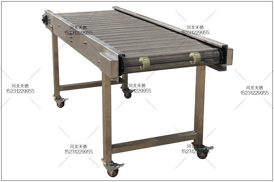 該不銹鋼輸送機(jī)總長(zhǎng)為1.5米,總寬度為500毫米,高度為60公分,采用鏈條式不銹鋼輸送帶來傳送物品,采用1.2鋼絲編織的10*20的孔,鏈條節(jié)距采用31.75毫米,使用直徑6毫米的串桿來支撐物料的輸送。大概120毫米左右一個(gè)串桿。